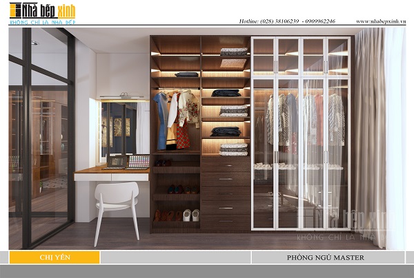 Phòng ngủ về nội thất thì không thể thiếu tủ quần áo việc làm đẹp là điều cơ bản trong cuộc sống hằng ngày bởi vì thế chúng ta hay sở hửu những món đồ phụ kiện như quần áo, trang sức, dày dép hay những vật dung cho bản thân nó làm cho không gian của ta trở nên bề bộn hay để nhiều chỗ bất lợi cho việc sử dụng mỗi khi tìm kiếm. Một chiếc tủ hiện đại được thiết kế nhiều ngăn đễ ta có thể dễ dàng treo hay sếp ngăn nắp, được làm từ vật liệu gỗ công nghiệp mang đến sự sang trọng, mặt trước được ốp bằng kính gia chủ có thể chưng diện những bộ đồ đẹp hàng hiệu của mình.
